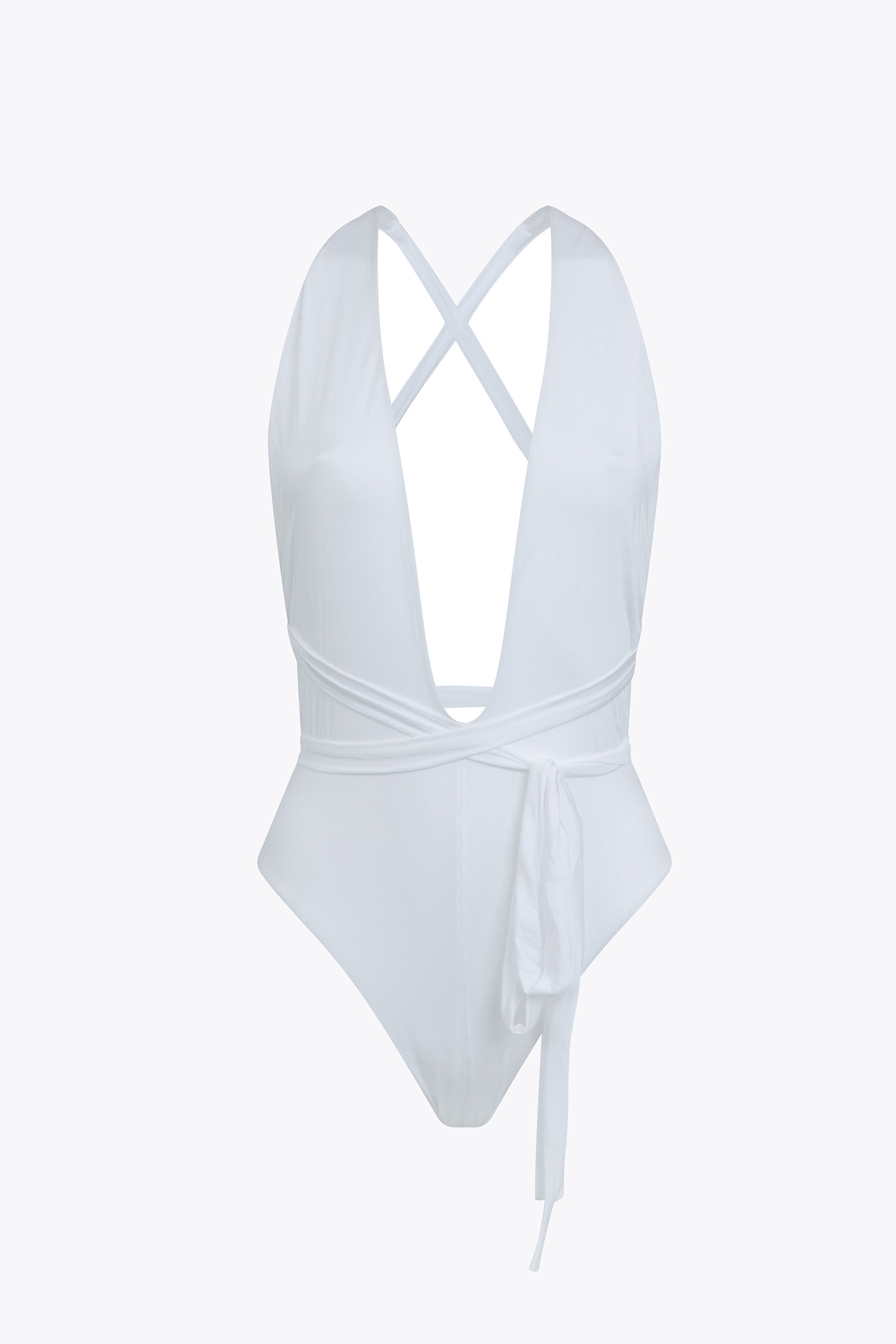 NECKED ONE-PIECE SWIMSUIT WITH LONG TIE THAT TURNS AT THE WAIST